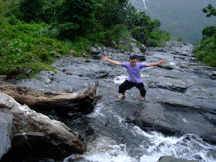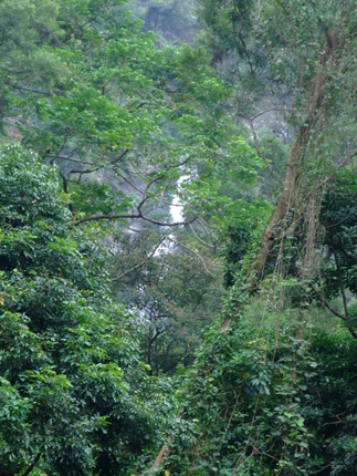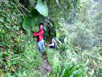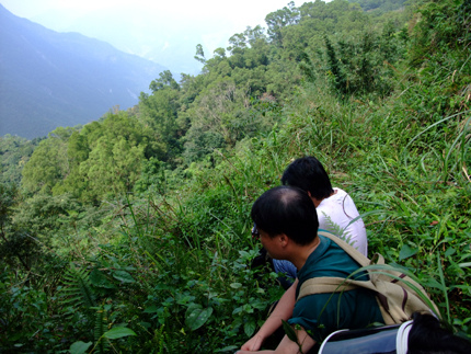 從舊筏灣到巴達因這段山路是具有挑戰性的,步行一路走到谷底,約40分鐘路程,是一連串的急降坡,沿途可以看到撒拉灣瀑布疾沖而下,落差約一千公尺,非常壯觀。到了谷底,過了射鹿吊橋,稍事休息片刻準備上山囉!